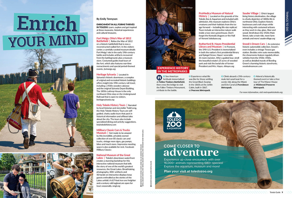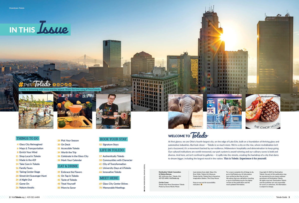Jessa led the complete design process for this guide bringing Destination Toledo's vision to life. She kicked off the project with collaborative client meetings with Great Lakes Studios' editor and account manager to understand their goals, then worked closely with GLS's editor throughout to keep content and design in sync.